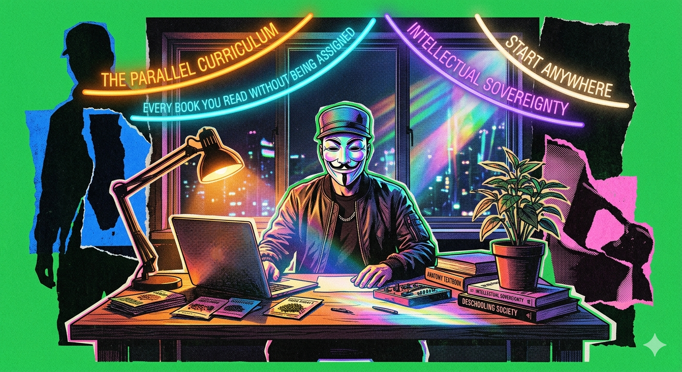 The knowledge insurgency is not primarily about opting out of formal education. It is about recognizing that the managed dependency the credential system creates — the belief that you cannot know until you have been taught, cannot work until you have been certified, cannot learn until you have been enrolled — is the same managed dependency that the money system, the media system, and the governance system all require to function. Attack one layer of dependency and the others weaken. Build competence without institutional permission and you build the confidence that the same approach is possible in every other domain. The insurgency begins with a book you chose, not one you were assigned.