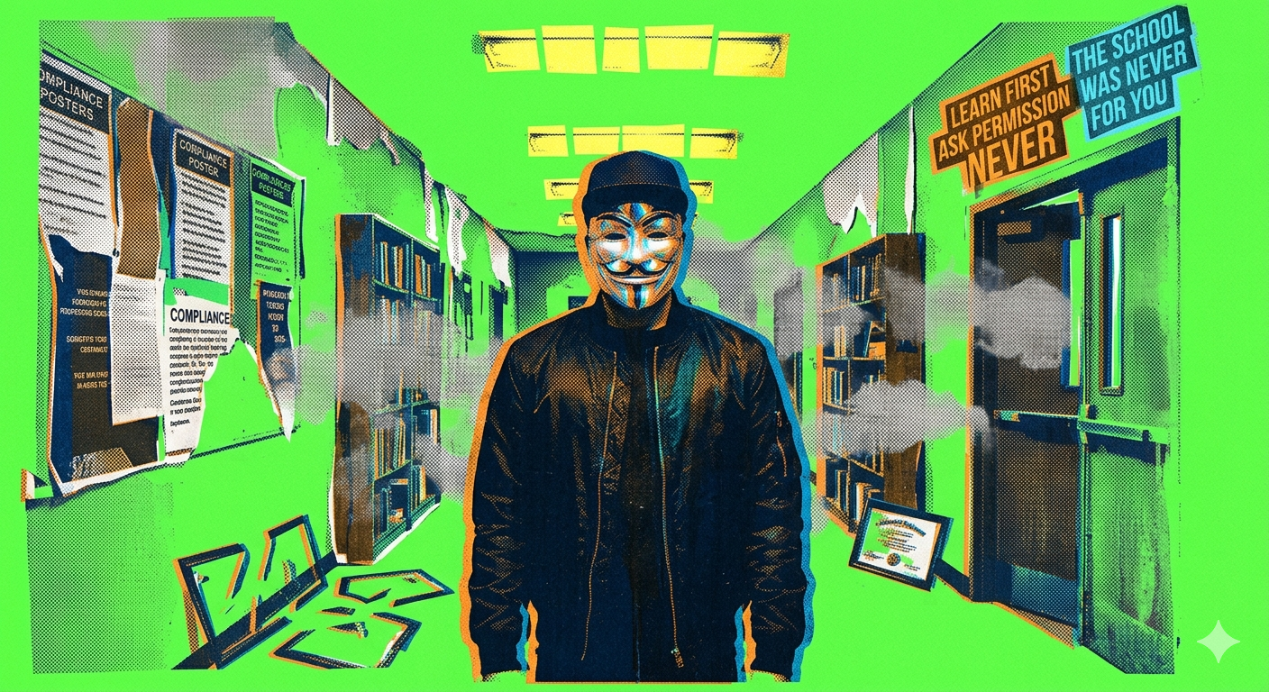 The school was never designed to produce thinkers. It was designed to produce employees — compliant, credentialed, and dependent on institutional certification for permission to work. The library has always been free. The apprenticeship has always worked. The internet put every body of human knowledge within reach of anyone with a connection. The only remaining obstacle to real education is the belief that it requires permission.